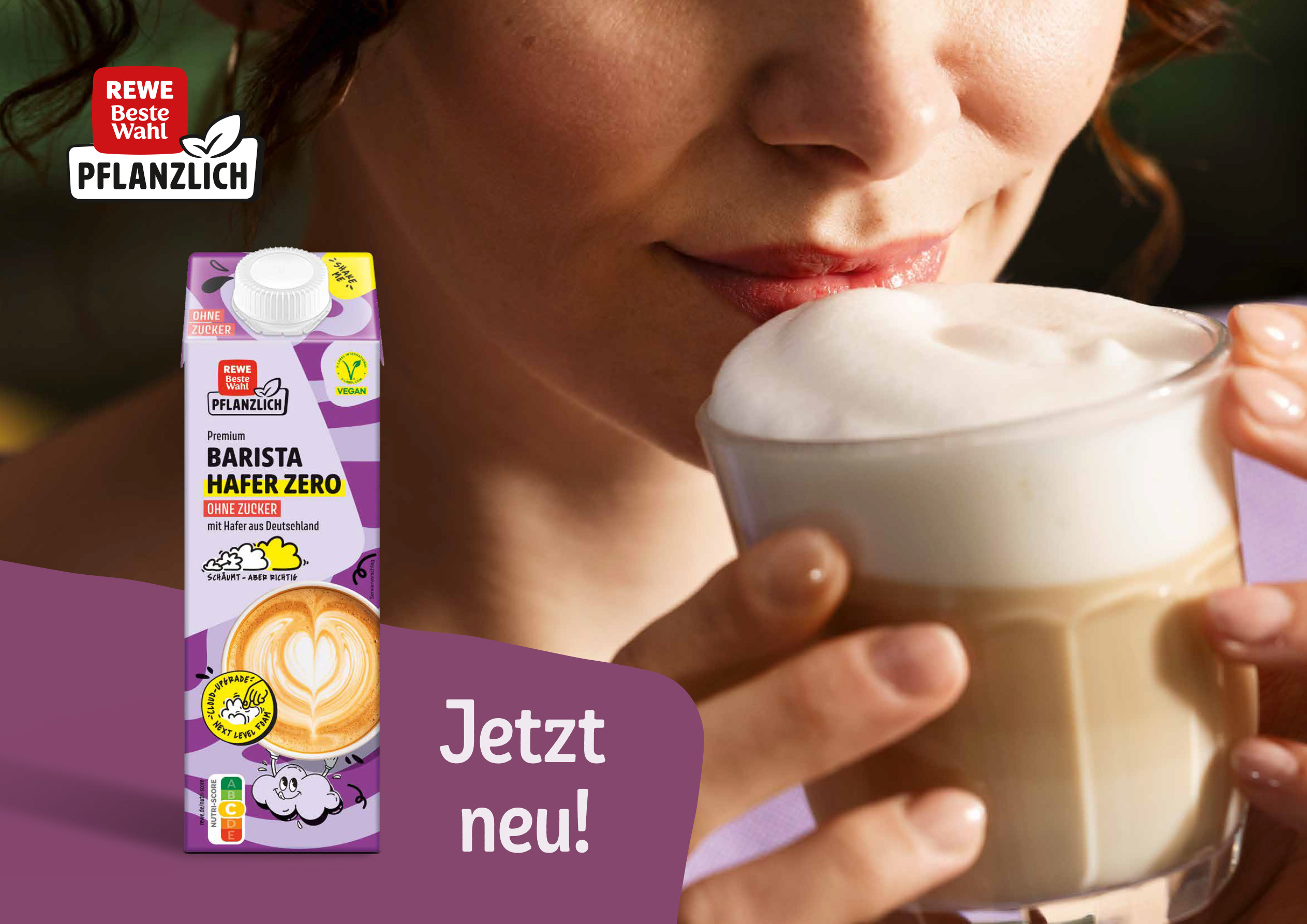 Passend zum neuen Namen führt REWE ein neues Produkt ein: den REWE Beste Wahl Pflanzlich Barista Hafer Zero. Der Haferdrink kommt ohne Zucker aus, wird mit Hafer aus Deutschland hergestellt und lässt sich besonders gut aufschäumen – ideal für Kaffee, Cappuccino oder andere warme Getränke. Damit erweitert REWE das pflanzliche Sortiment um eine genussvolle Variante, die viele Kund:innen gezielt nachfragen. Alle pflanzlichen Produkte sind natürlich auch über den REWE Liefer- und Abholservice erhältlich.