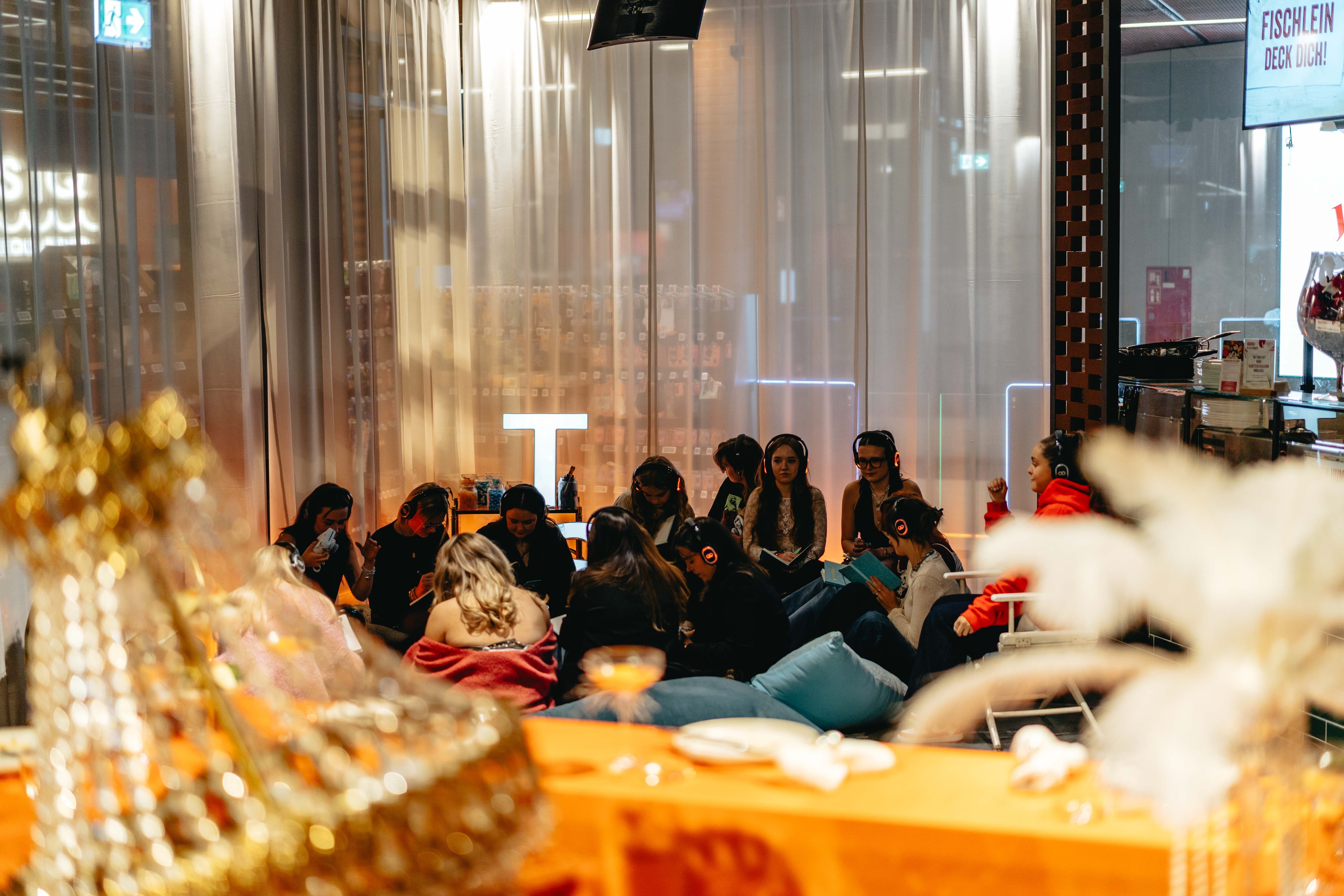 Unter dem Motto „The Life of a Food Girl“ erstrahlte der Hamburger REWE Markt für einen Tag in einem Look, der ganz auf die Ästhetik des Albums abgestimmt war: Unter anderem sorgten orangefarbene Folierungen und glitzernde Deko-Elemente für echtes Showgirl-Flair. Die visuelle Inszenierung bildete jedoch nur die Kulisse für das Herzstück der Aktion: eine Silent Disco mitten im Markt. 14 ausgewählte Swifties erlebten das neue Album über Kopfhörer und tauschten sich über ihre gemeinsame Leidenschaft aus. Passende Snacks und Getränke sowie personalisierte „The Life of a Food Girl“-Goodiebags voller REWE-Highlights rundeten das Event ab.