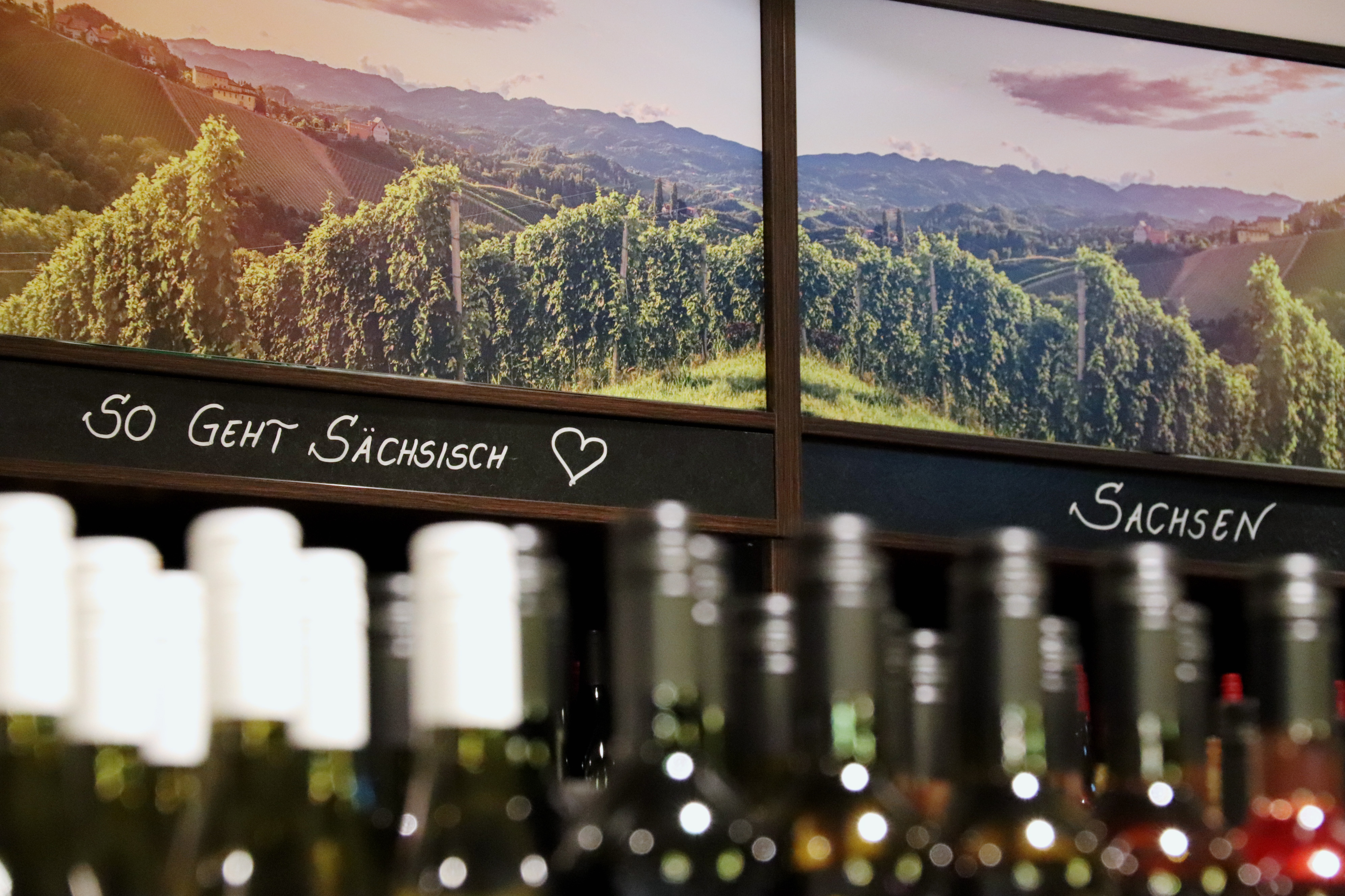 Mit wechselnden Themenaufbauten beispielweise zu sächsischem Goldriesling und zu Anlässen wie Ostern sorgen die beiden Weinfachberaterinnen Kathleen Mitschke und Liane Schubert für Abwechslung. Informationen zum Geschmack und den Anbaugebieten finden sich direkt am Regal. Bei monatlichen Kundenabenden mit Verkostungen geben sie ihr Fachwissen an die Gäste weiter. Mit dem benachbarten Winzer Frédéric Fourré organisieren sie auch Weinbergwanderungen für ihre Kunden. „Wir haben viel Spaß am Weinverkauf. Wenn man großartige Arbeit leisten will, muss man einfach lieben, was man tut“, betont Liane Schubert.
