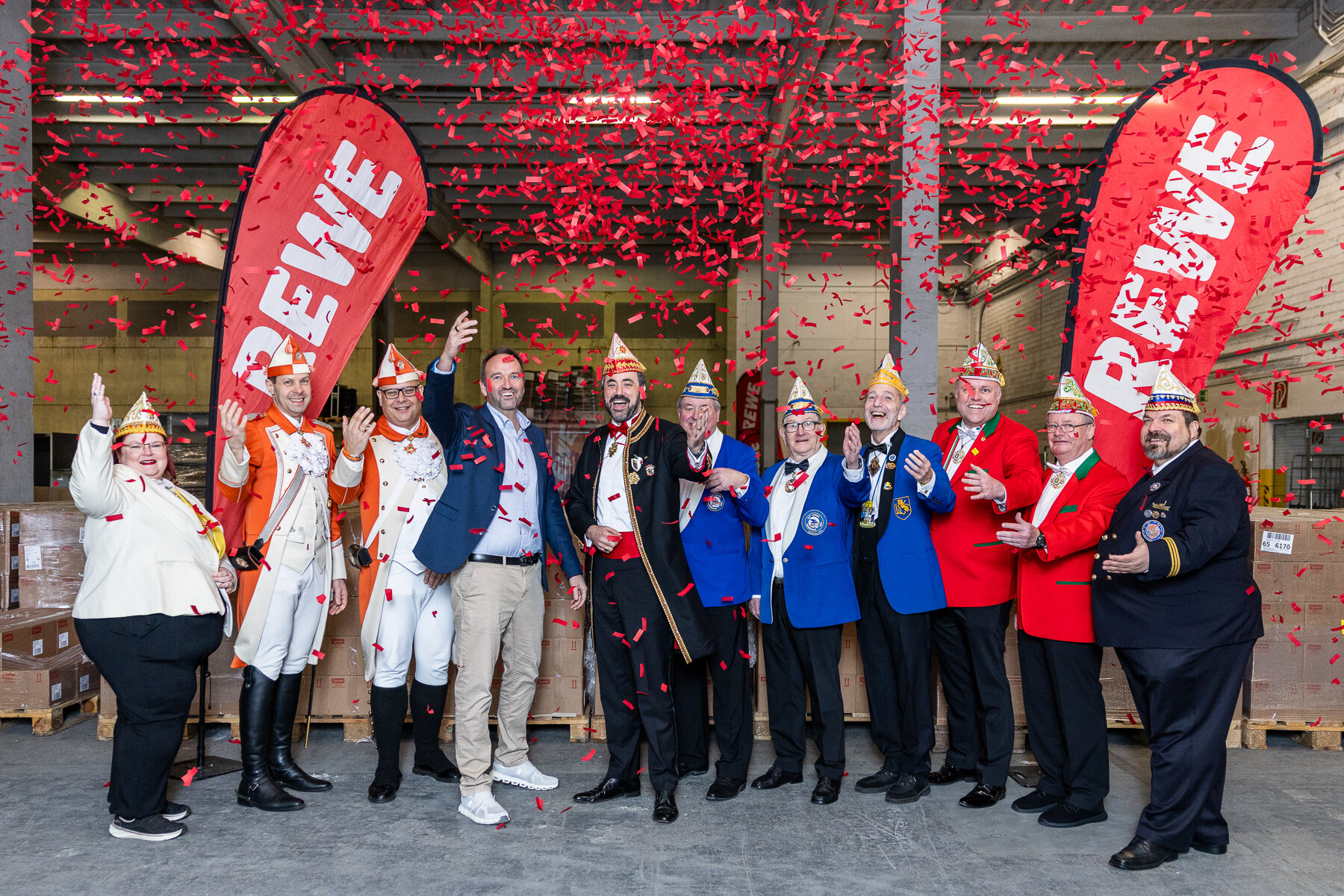 Viele dem Festkomitee angeschlossene Mitglieds-gesellschaften engagieren sich nicht nur im großen Rosenmontagszug, sondern auch bei den Veedelszügen als Organisatoren oder teil-nehmende Gruppen. Insgesamt 34 Vereine haben sich an der Aktion beteiligt und die Kamellespenden für die Nutzung in den Veedelszügen mitgenommen. Damit leisten REWE und das Festkomitee Kölner Karneval einen wichtigen Beitrag dazu, die Vielfalt und Lebendigkeit des Veedelskarnevals zu erhalten.
